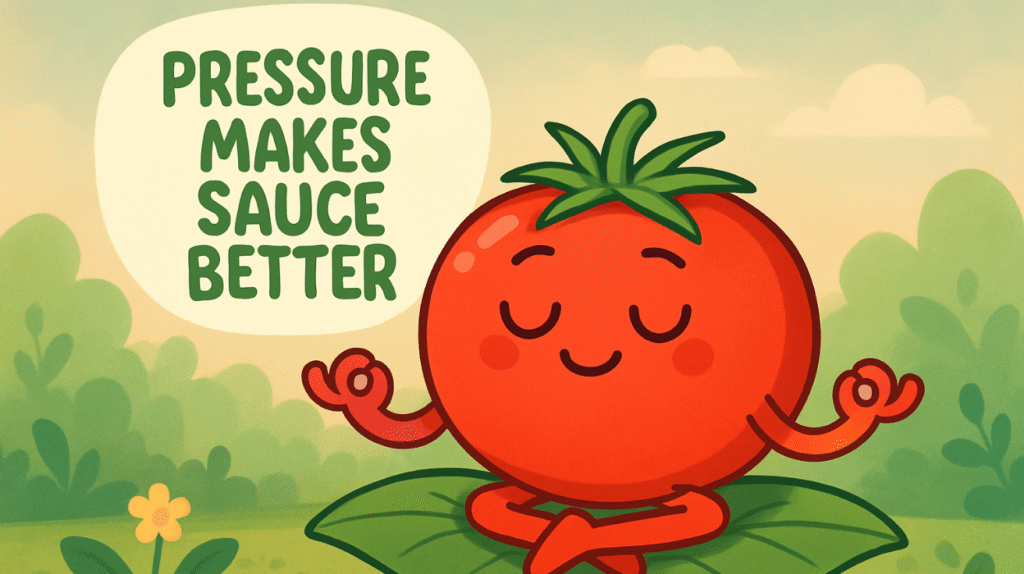 • Why did the tomato stay calm? It knew pressure makes sauce better.